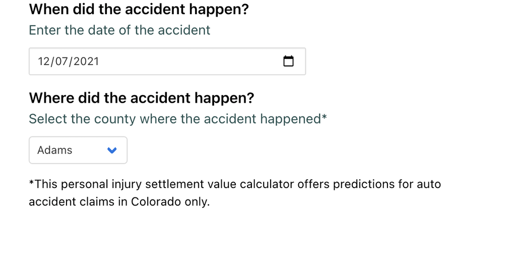 How much is your case worth? CaseYak matches user inputs to years of jury verdict data to provide a data-backed estimate for motor vehicle accident claims (currently available for Colorado claims)