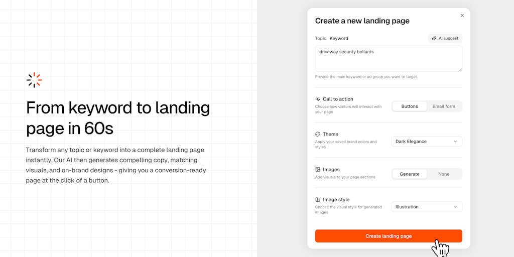 Landing - Launch landing pages in minutes with AI | Product Hunt