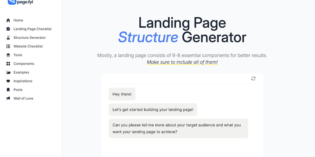 Landing Page Structure Generator - Component ideas, formulas | Product Hunt
