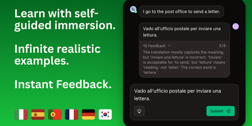 Dear Duolingo, I'm fed up of spending weeks learning how to order "un caffè con latte". LangLime takes a self-guided approach to learning, helping you with your reading and writing by translating real