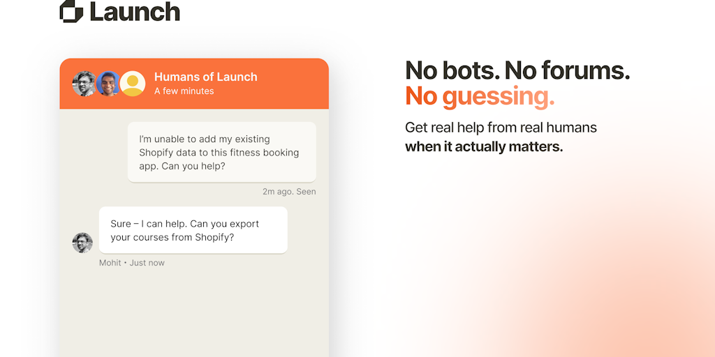 Launch builds real products from a single prompt- frontend, backend, a built-in database, and live integrations. No Supabase. No Zapier. When you’re stuck, a real human helps you debug and ship. From