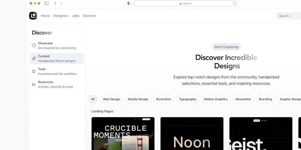 Layover - A social platform for designers to connect, share, and showcase their work. Discover design inspirations and job opportunities tailored for creative professionals.