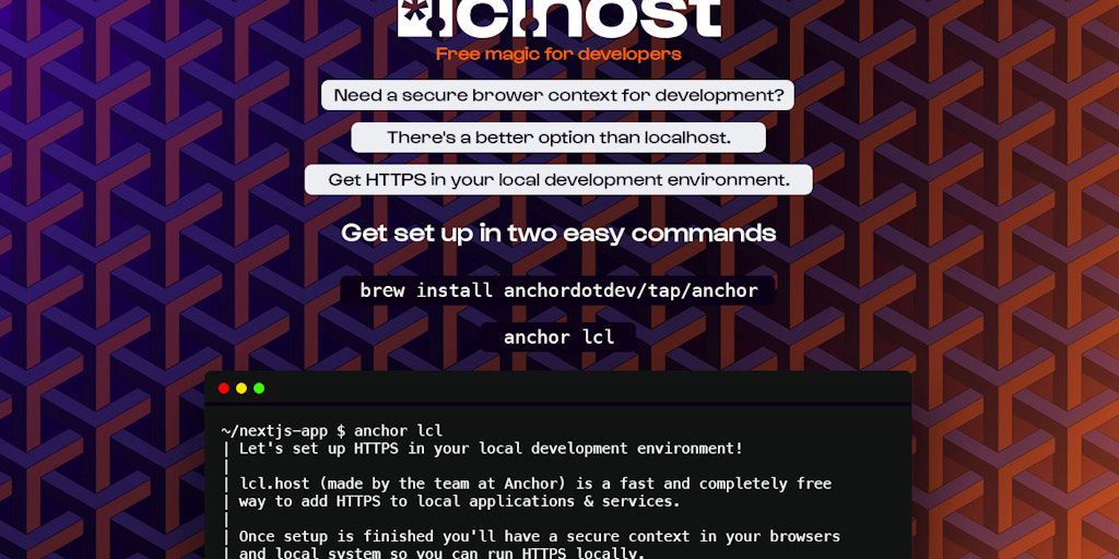 The fastest and easiest way to get HTTPS in your local development environment, lcl.host gives you browser trusted HTTPS certificates for your web apps in development. The CLI and language integration
