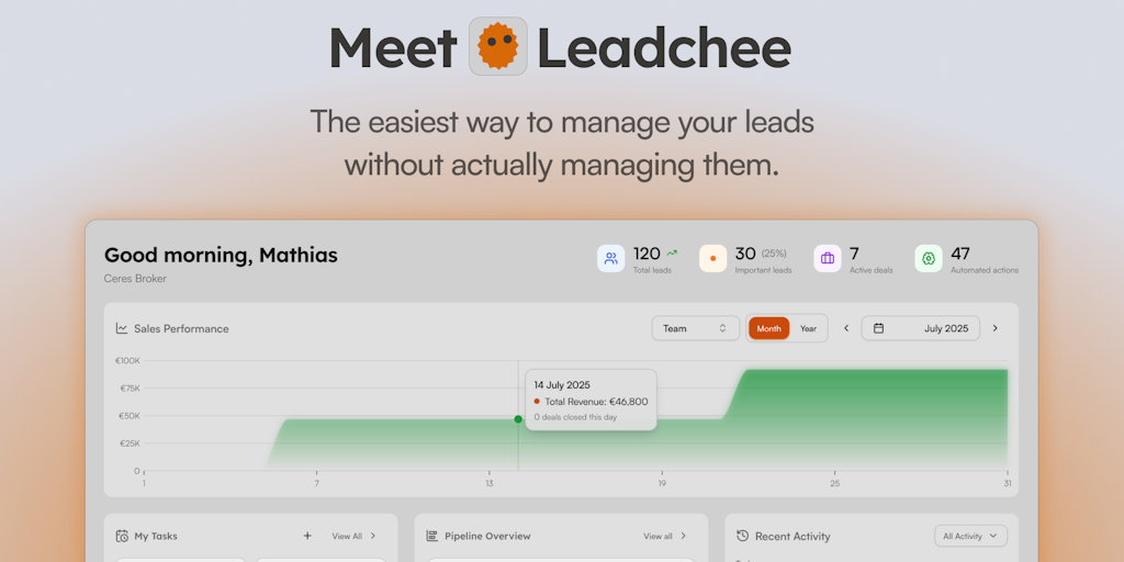 Leadchee is a CRM built for startups, designed to make managing leads effortless. Unlike bloated enterprise tools, Leadchee integrates seamlessly into your workflow, automating follow-ups, prioritizin