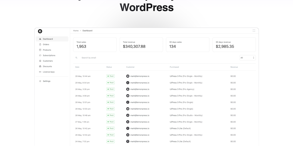 Seamlessly integrate and manage your LemonSqueezy store, orders, and subscriptions directly from your WordPress dashboard.