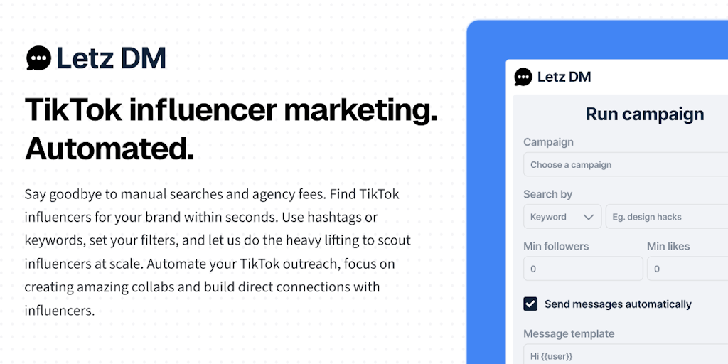 Letz DM - Find, DM, Collab - Tiktok Influencer Marketing Automated! | Product Hunt