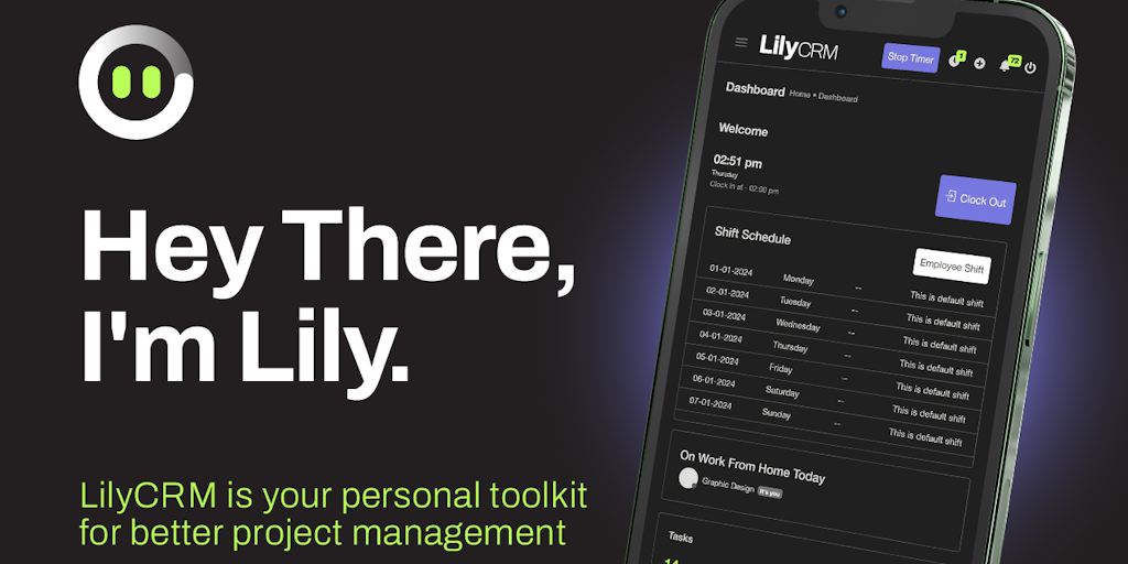 Hey there! I'm Lily, your all-in-one CRM platform. Managing tasks and projects is my specialty, ensuring the smooth flow of your business operations. Tracking employee time and attendance, handling in