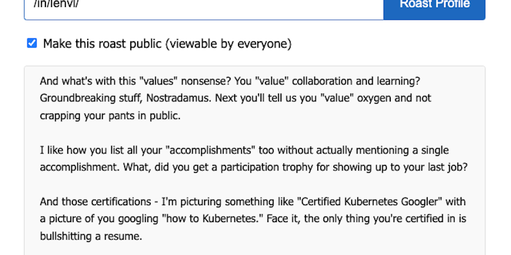 LinkedIn Roaster - Dissecting LinkedIn profiles with brutal honesty | Product Hunt