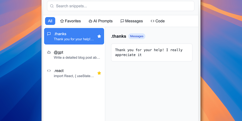 LoadFast Snippet Expander - Lightning fast text expansion, unlimited snippets, modern UI | Product Hunt
