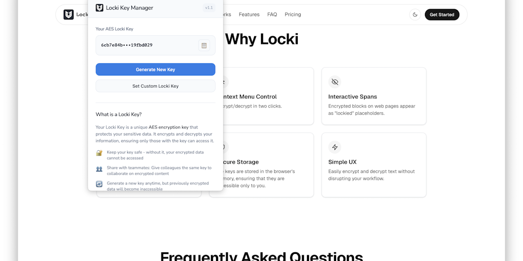 Locki is a lightweight browser extension that makes it simple to protect your sensitive data. It automatically encrypts text before sending it and decrypts it when received, keeping your communication