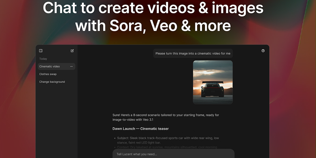 Lucent Chat: Create stunning videos by speaking to AI | Product Hunt