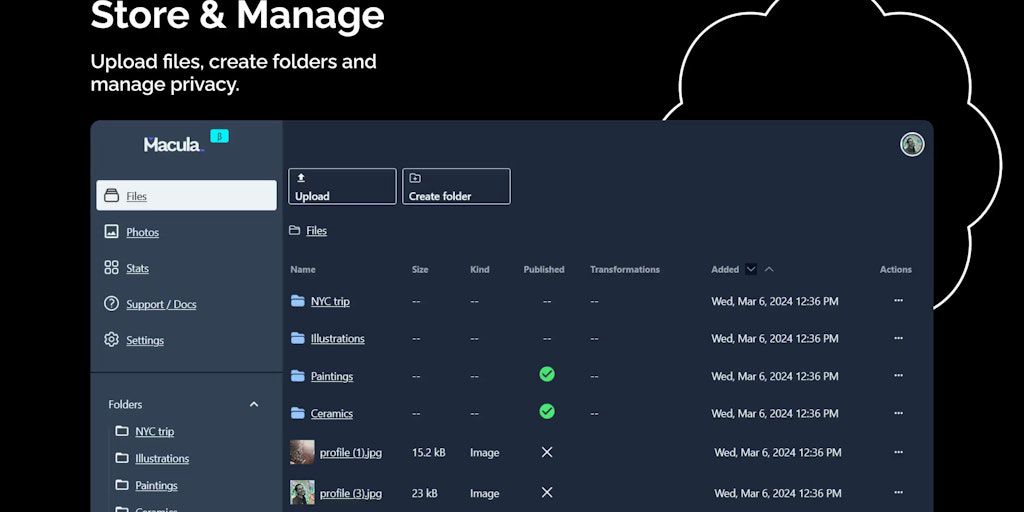 Stress-free asset management built for creators. Safely store your multimedia, with Macula's IPFS-based double backup. Choose what you want to share and set a license. Share anywhere with Unilink - we