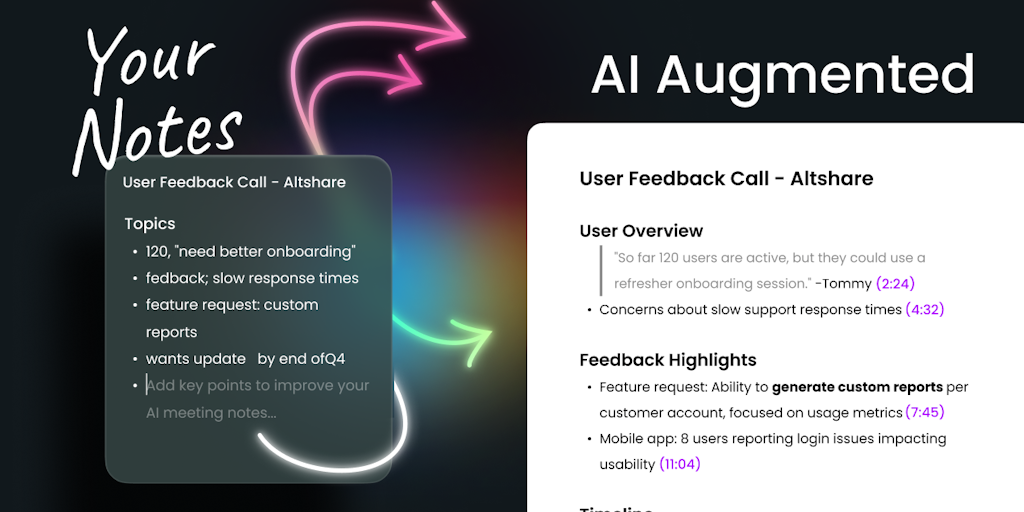 The Magic Notepad brings the human touch back to your meeting notes. You jot down what matters to you, and your AI takes it from there, organizing your raw notes into structured insights, beautiful fo