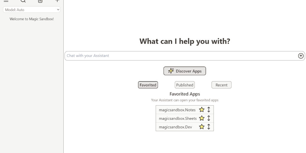 On Magic Sandbox, your AI assistant can interact with community-built Magic Sandbox apps to help you get things done. Developers can easily publish and monetize their own AI-powered apps.