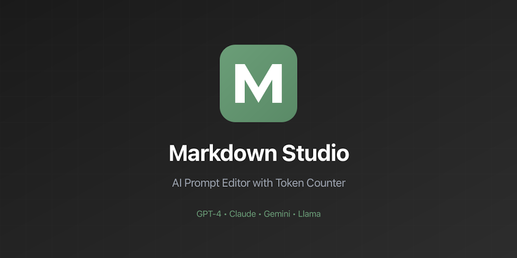 Markdown Studio is a free editor designed for the AI workflow era — draft prompts, format context, and prep content for ChatGPT, Claude, and other LLMs. ✓ Real-time token counting across GPT-4, Claude