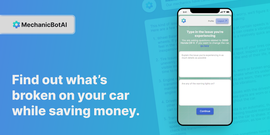 MechanicBotAI is your only stop if you're looking to find out what is the current issue with your car. Easy to use, straight to the point, personalized for your car specifically.