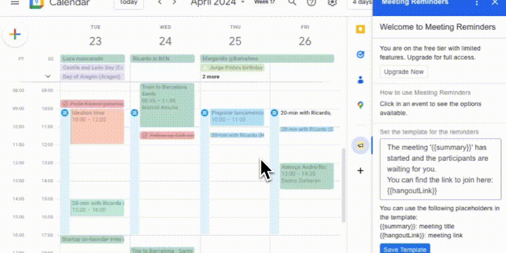 Meeting Reminders pings the attendees of your meetings when they are not showing. Save your time by manually emailing them every time they are late. Simply install a Google add-on in your Google Calen