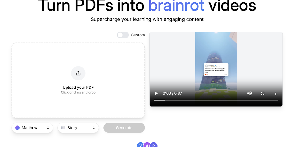 MemenomeLM - Turn PDFs into brainrot videos | Product Hunt