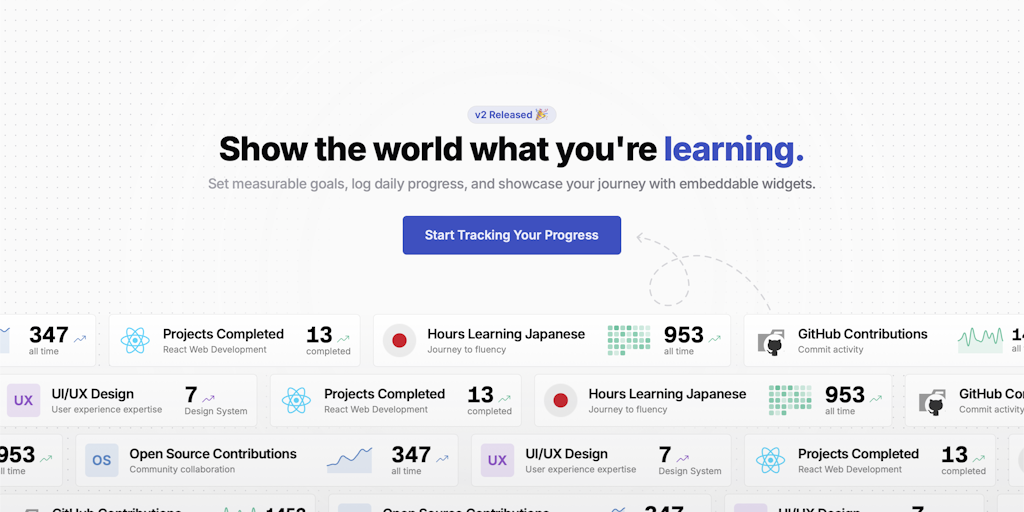 Set goals, log progress, and showcase your learning journey with beautiful widgets. Embed on any website.