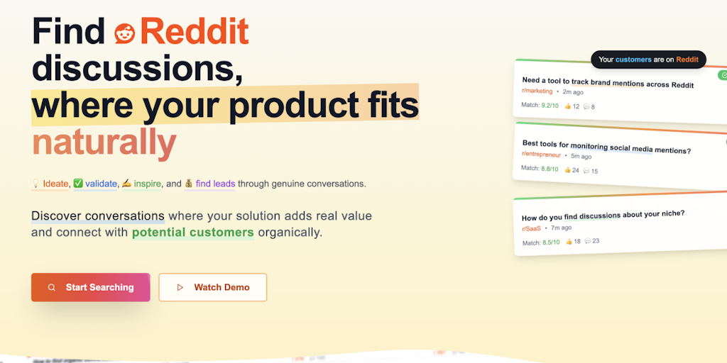 Find Reddit conversations where your product fits and connect with real customers. We delivering ready-to-engage opportunities for leads, feedback, and growth in minutes. Without the guesswork.