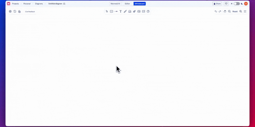 Mermaid's Whiteboard combines the power of Mermaid JS with the intuitiveness of a drag-and-drop interface used by traditional diagramming tools. Generate diagrams with Mermaid AI then easily move, res