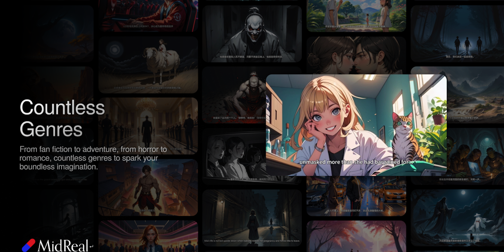 MidReal lets you craft interactive, illustrated stories with AI. Start with a sentence, then choose your own adventure to guide the story's infinite unfolding. We support all genres, from anecdote to