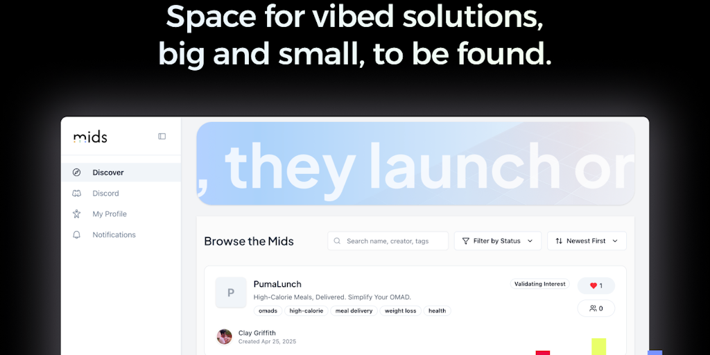 In world where everybody can build apps, mids.dev is a launchpad for easy sharing, discovery and following. Before the domain, get the Mid. Post projects, capture interest, build followers, follow oth