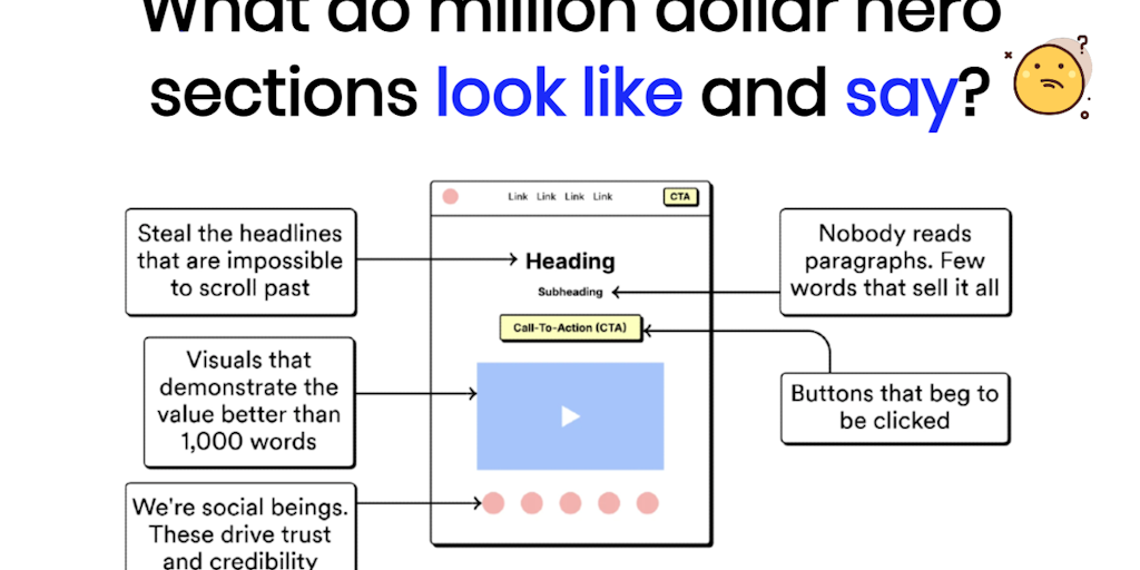 This is a compilation of 100+ hero sections of small business websites that make over $1,000,000 in revenue to inspire, repurpose, and learn from. Now newly updated and with new features.