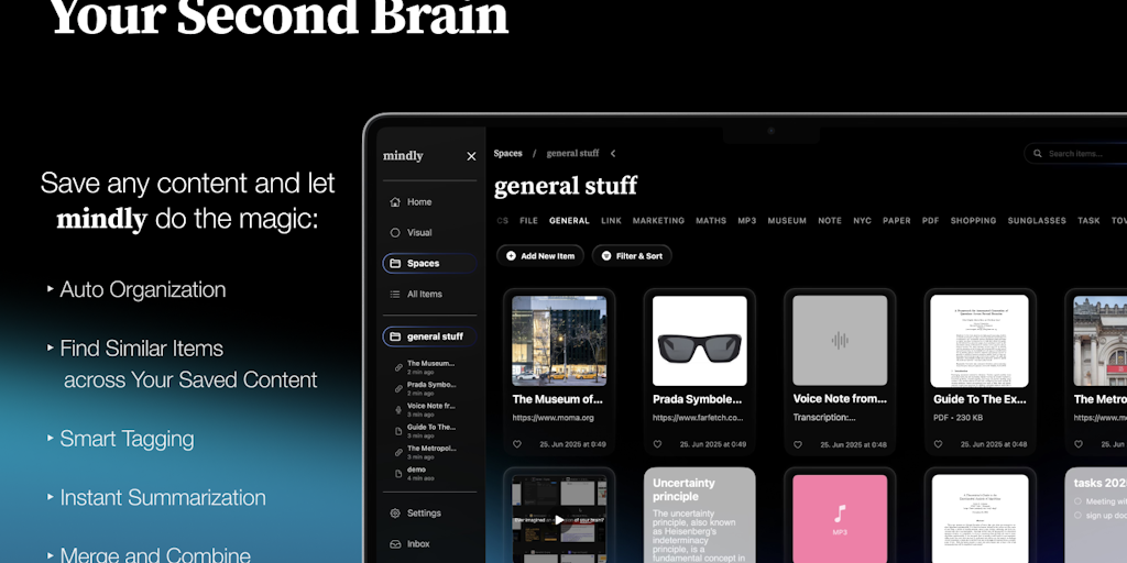 Capture anything in seconds on your Mac. Mindly auto-organizes, tags, summarizes, and connects your ideas, so nothing ever gets lost or forgotten. Upgrade your workflow with a lightning-fast second br
