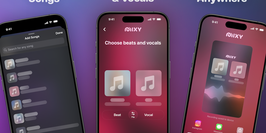 Mixy lets anyone remix music without knowing how to DJ. ⁕ Add your songs ⁕ Instantly blend vocals and beats ⁕ Play and share your mashup anywhere