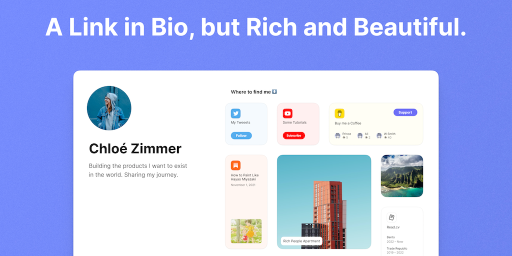 Bento - A link in bio, but rich and beautiful. ✨ | Product Hunt