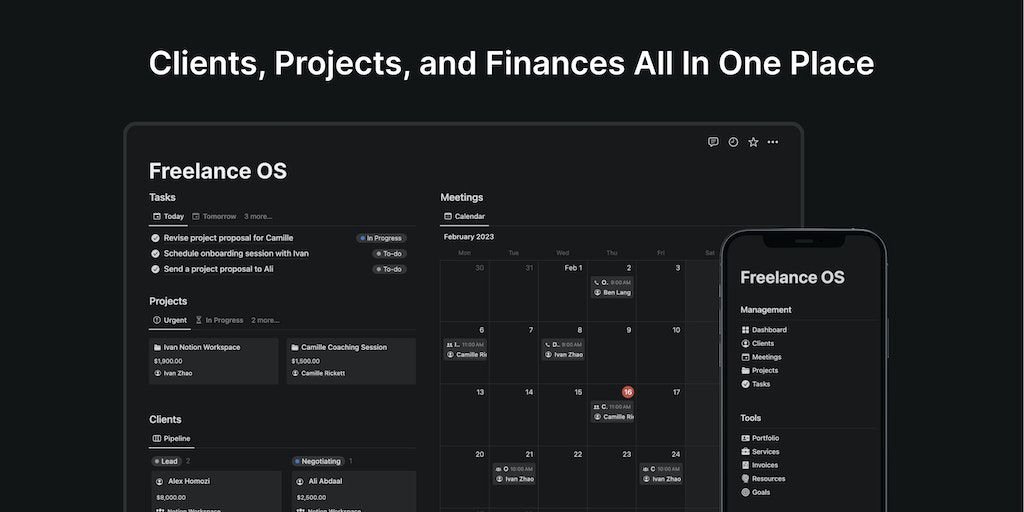 Make freelancing easier with Freelance OS - turns Notion into an all-in-one system for managing clients, projects, finances, and more.