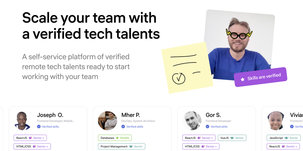 The first ever way for you to access a remote tech talent platform to combine vetting, testing, interviewing, curation and ongoing managed service to guarantee quality so you can launch your product q