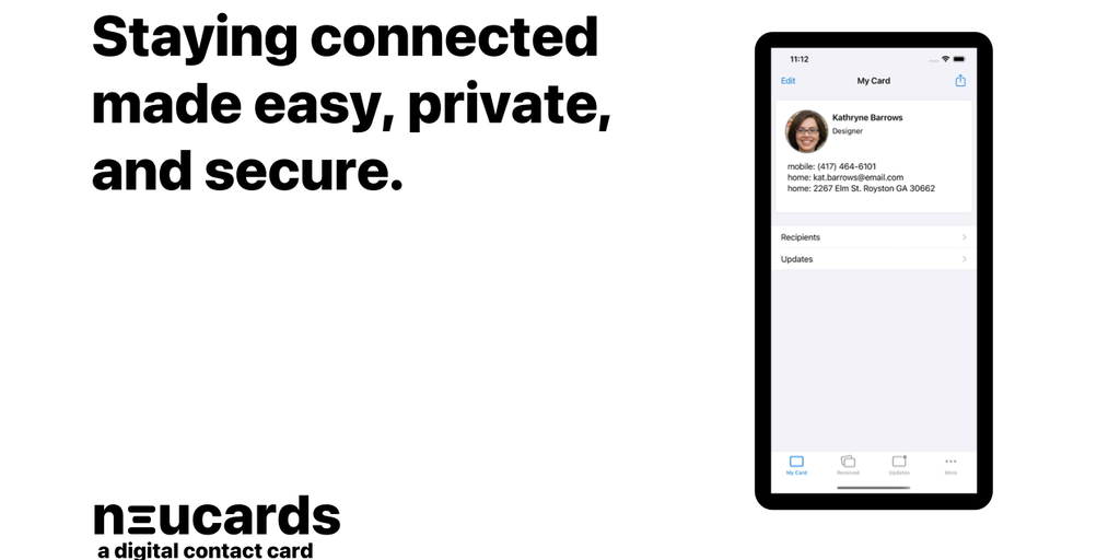 Share your contact information quickly, privately, and securely. Neucards uses end-to-end encryption so only those who have your card may access your information. Display a QR code to give your card's