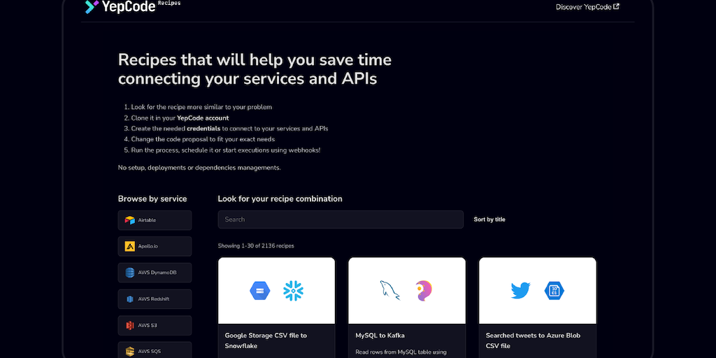 YepCode Recipes - JavaScript snippets to connect any service, database or API | Product Hunt