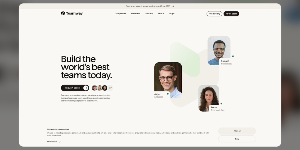Teamway is the member-owned society where world-class tech professionals team up with progressive companies to build meaningful products and services.