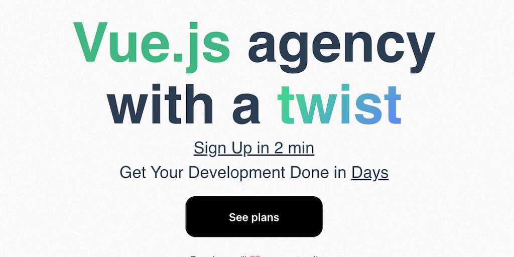Vue.js Agency with a Twist. Sign Up in 2 min & Get Your Development Done in Days