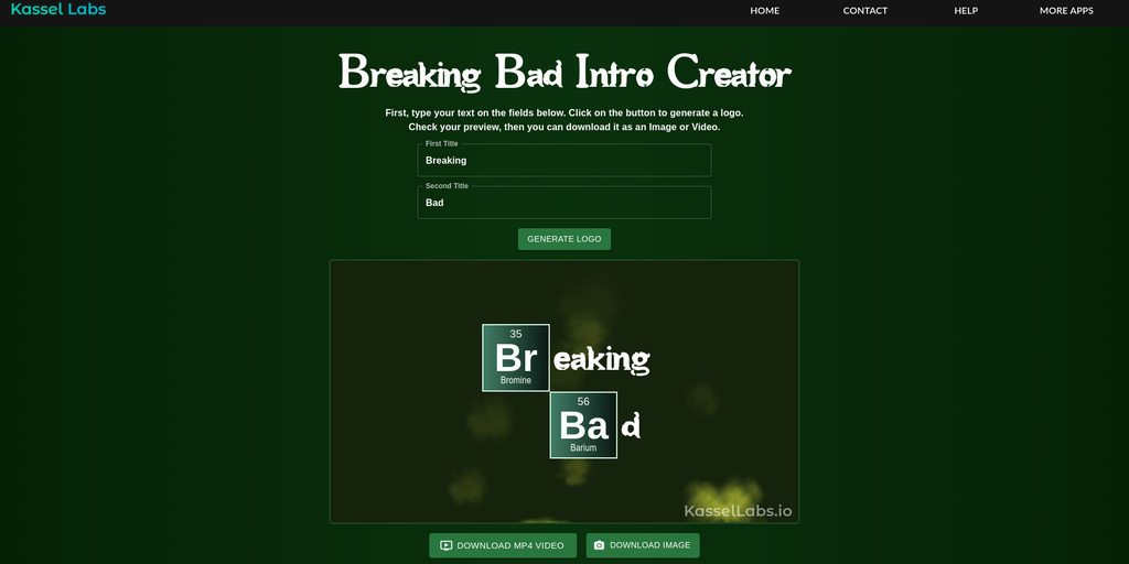 Breaking Bad Intro Creator lets you customize the customized opening with the texts you wish and then download it as an image or video. It automatically find the chemical elements that should be assig