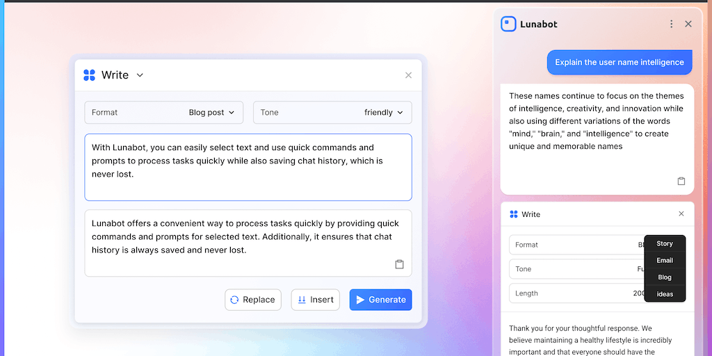 Lunabot is an extension for better ChatGPT experience and run ChatGPT on any webpages. Lunabot can be used on any webpage to provide writing suggestions, content optimization tips, translation assista