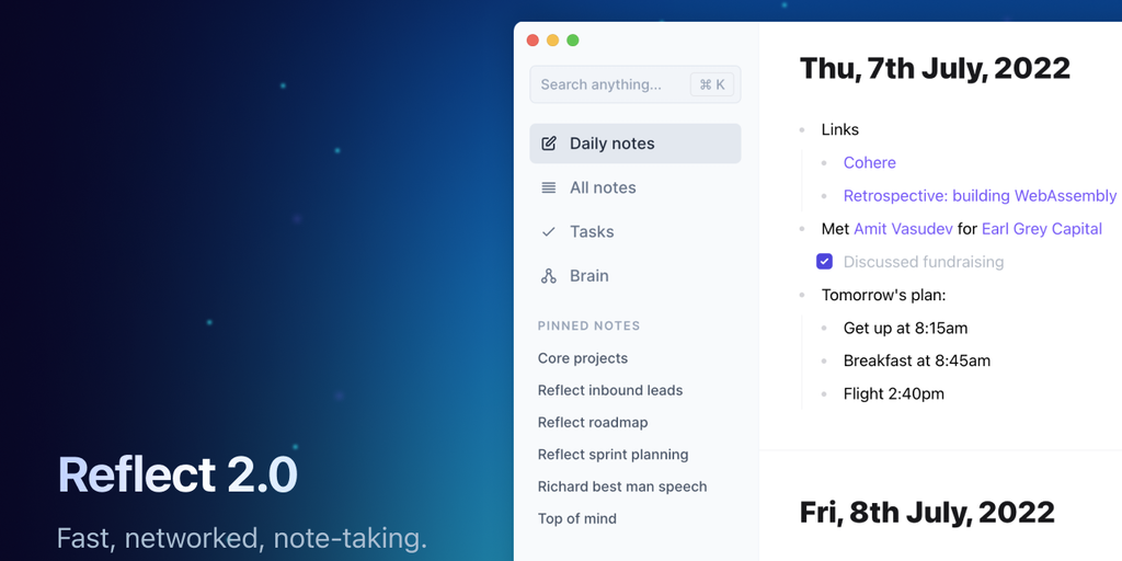 Reflect 2.0 - Networked note-taking, now v2 | Product Hunt