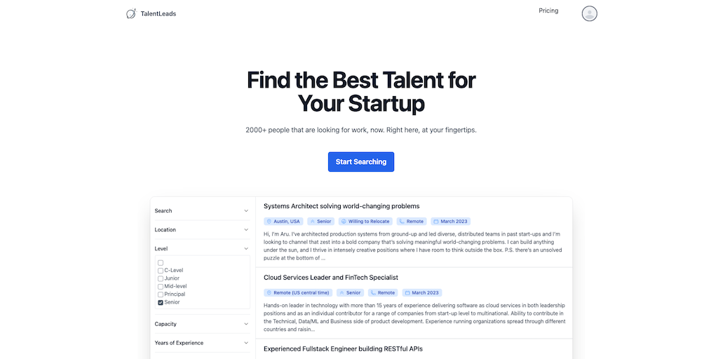 Talent Leads - Find the Best Talent for Your Startup | Product Hunt
