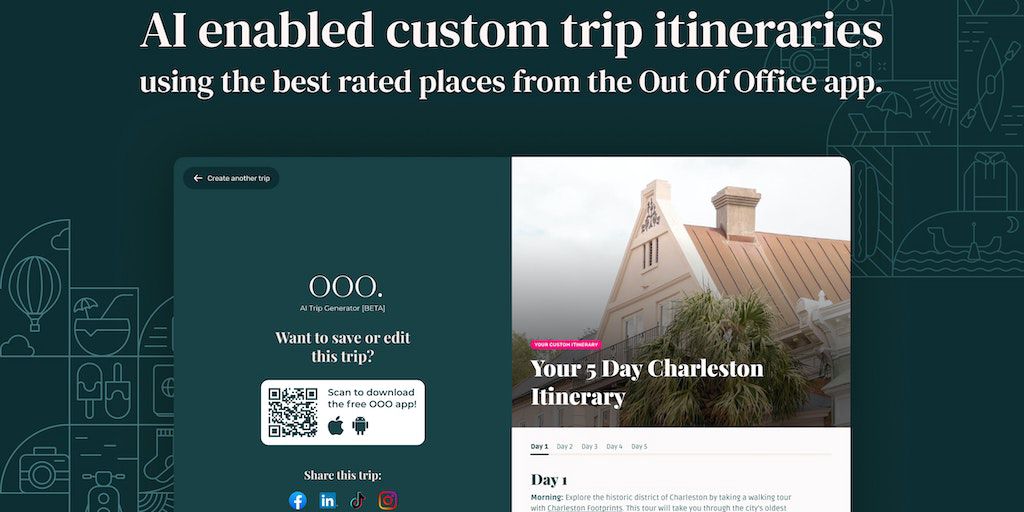 Out Of Office is a social travel app that helps people find the best travel tips and recs from sources they trust. The AI Trip Generator takes the best reviewed places from the OOO app to create custo
