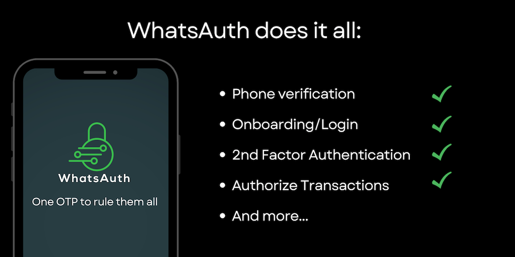 WhatsAuth revolutionizes OTP solutions with a frictionless and secure experience. Say goodbye to SMS frustrations and embrace seamless login, authentication, recovery, transactions, and verification.
