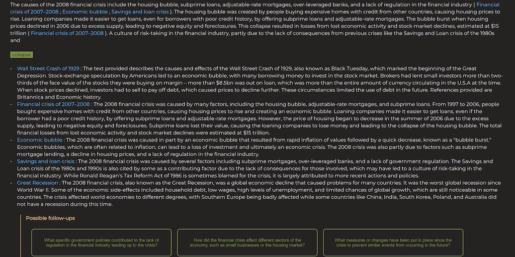 Hexagons Search Engine is a semantic search tool that focuses on returning truthful and high-quality answers. Answers are summarized and referenced to the sources of information. Users can also start