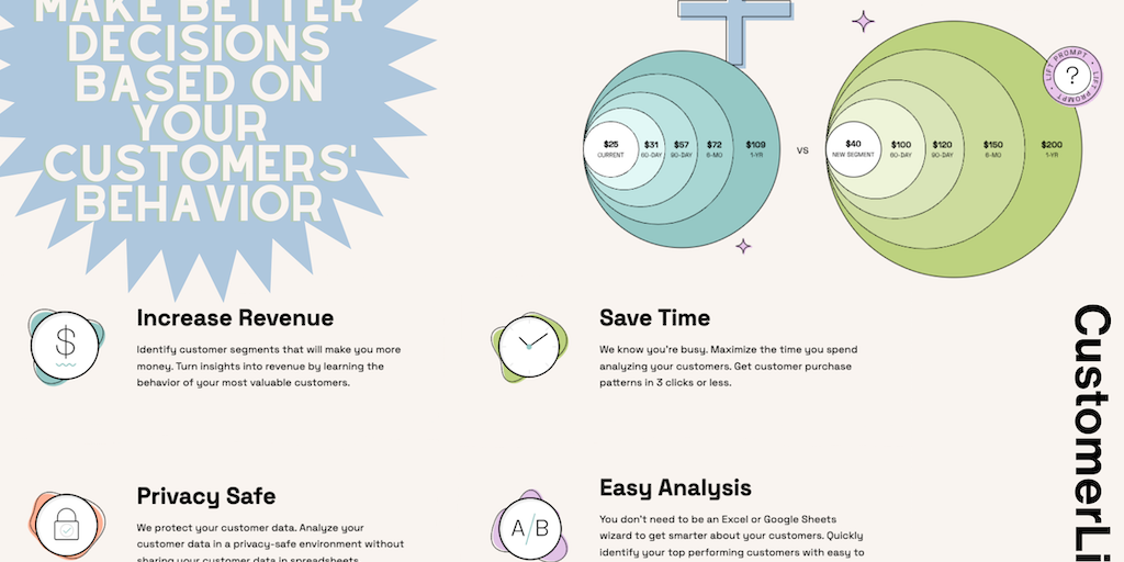 CustomerLift provides Shopify store owners with the ability to easily segment and analyze different customer segments using criteria relevant to your business such as timeframe, average order value, p
