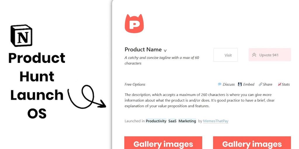 This is a toolkit and planner made on Notion with tips and checklists to nail your next Product Hunt Launch. And yes, it looks like Product Hunt itself.