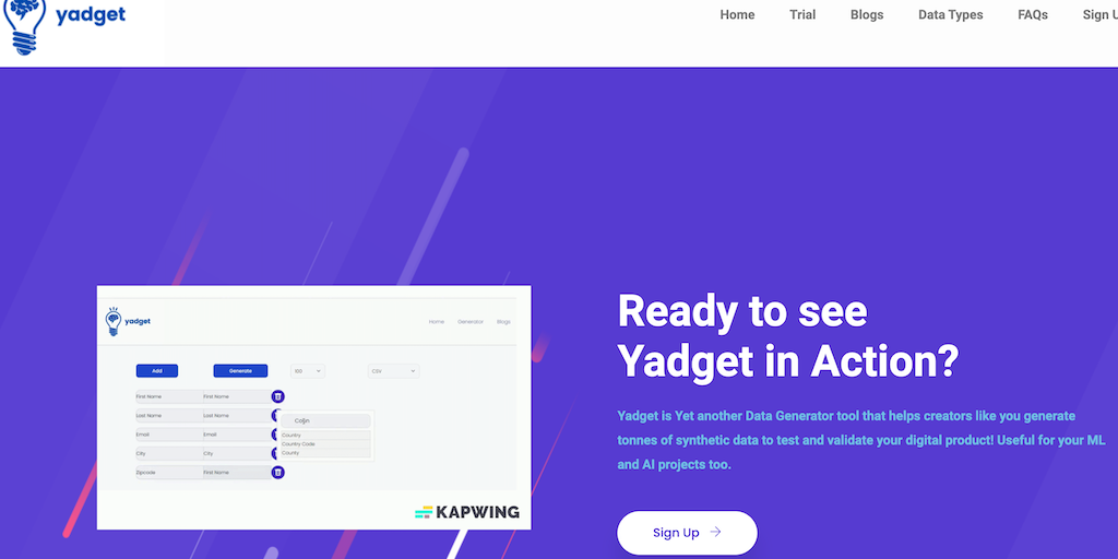 Yadget is an honest-to-goodness SaaS tool designed to generate Synthetic Data for testing. You can produce realistic, non-identifiable datasets to help you test and validate your products. Ideal for s