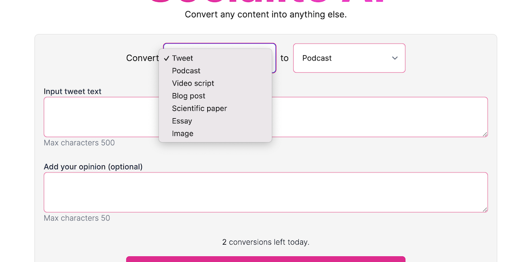 Socialite AI - Easily convert any item to another format with Socialite AI | Product Hunt