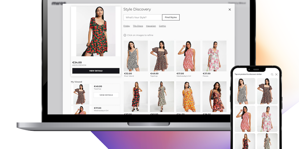 Miros is a Wordless Search solution. The AI recognizes your shopper’s buying intent through their browsing behavior and mirrors their thoughts by surfacing the exact products they’re thinking about, g