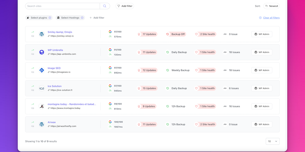 Revolutionize your agency operations with our all-in-one platform for managing multiple WordPress sites. Streamline tasks with automated backups, bulk actions, real-time monitoring, and then prove you